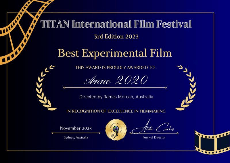 The Titan festival award followed the announcement in December that Anno 2020 had been awarded Quarter-Finalist status in the Best Film category at the International British Film Festival 2023. The movie also received an official selection for the Symbiotic Film Festival in Ukraine earlier this month.